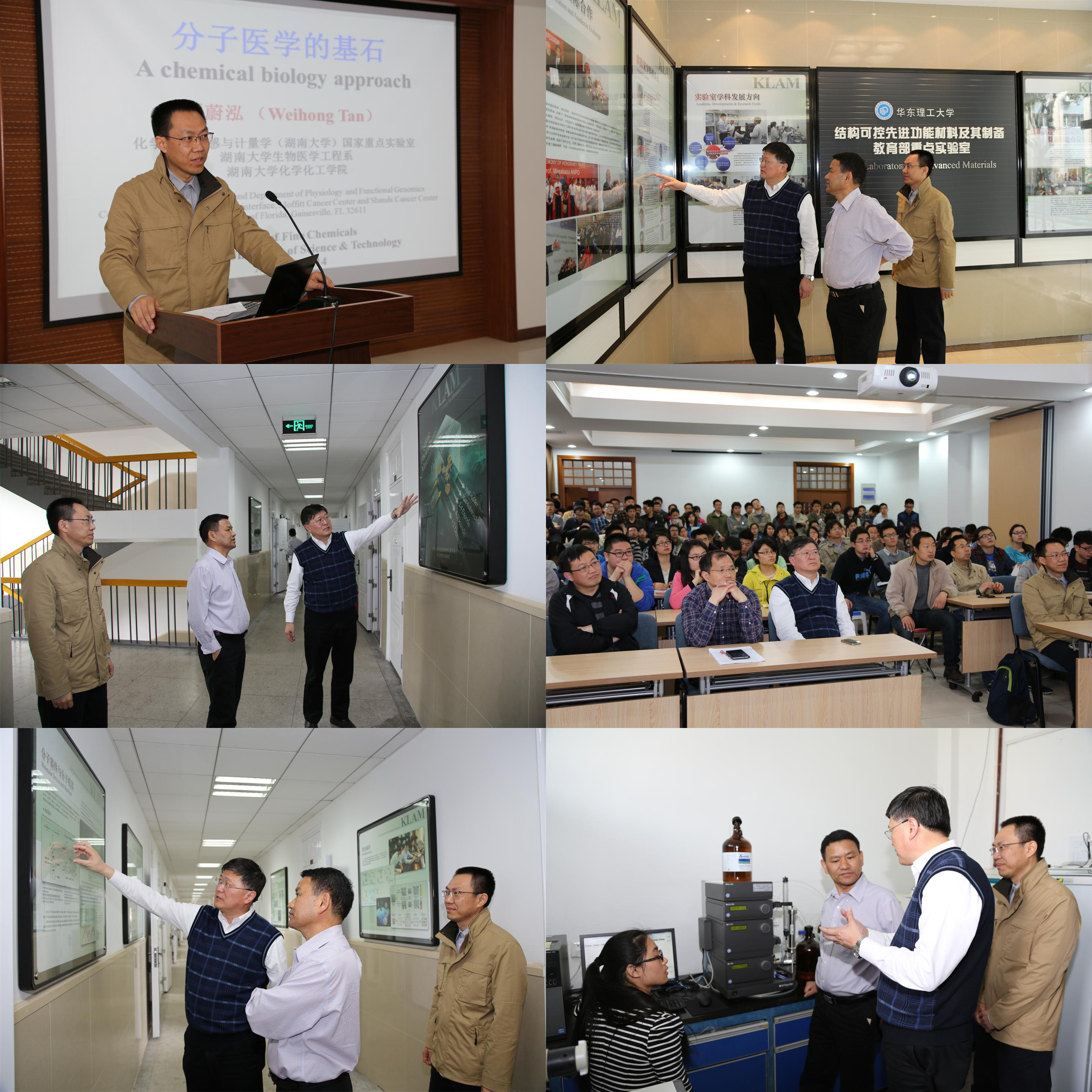 4月25日,应365英国上市集团官网化学与分子工程学院院长田禾院士的邀请,湖南大学谭蔚泓教授来365英国上市集团官网学术访问。谭蔚泓教授首先参观了365英国上市集团官网“结构可控先进功能材料及其制备”教育部重点实验室,田禾院士对实验室的建设、发展情况以及今后申请国家重点实验室的设想做了详细介绍,谭蔚泓教授对重点实验室的可持续发展提出了宝贵意见。