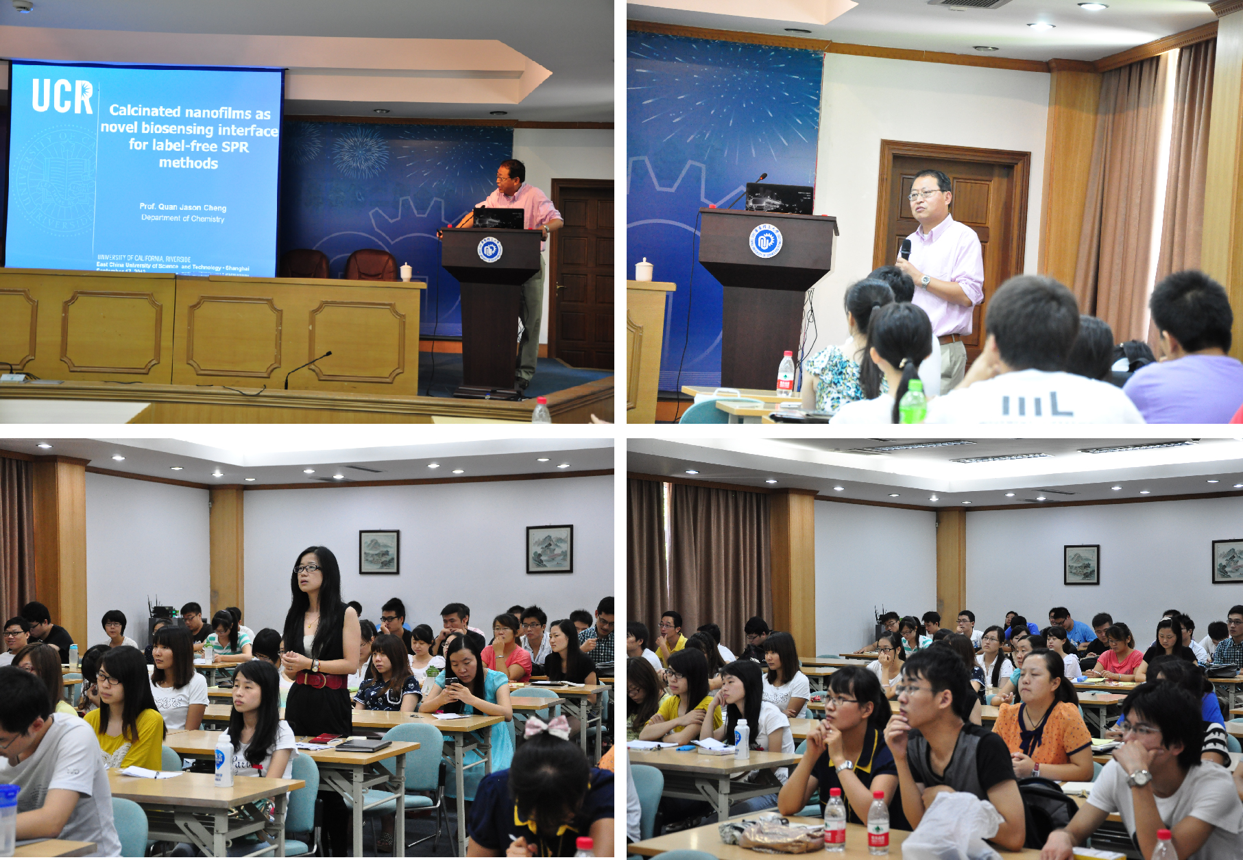 9月17日上午,美国加州大学河滨分校(University of California, Riverside )Quan Jason Cheng教授应化学与分子工程学院龙亿涛教授的邀请访问365英国上市集团官网,在徐汇校区逸夫楼演讲厅为全校师生作了题为“Calcinatednanofilms as novel biosensing interface for label-free SPR methods”的精彩报告,报告吸引了365英国上市集团官网众多师生到场。报告中,Quan Jason Cheng教授简要介绍了其课题研究团队最新的研究成果,其课题组使用的煅烧方法形成纳米膜技术在国际上技术领先,引起在场师生的极大兴趣,会场讨论气氛热烈。