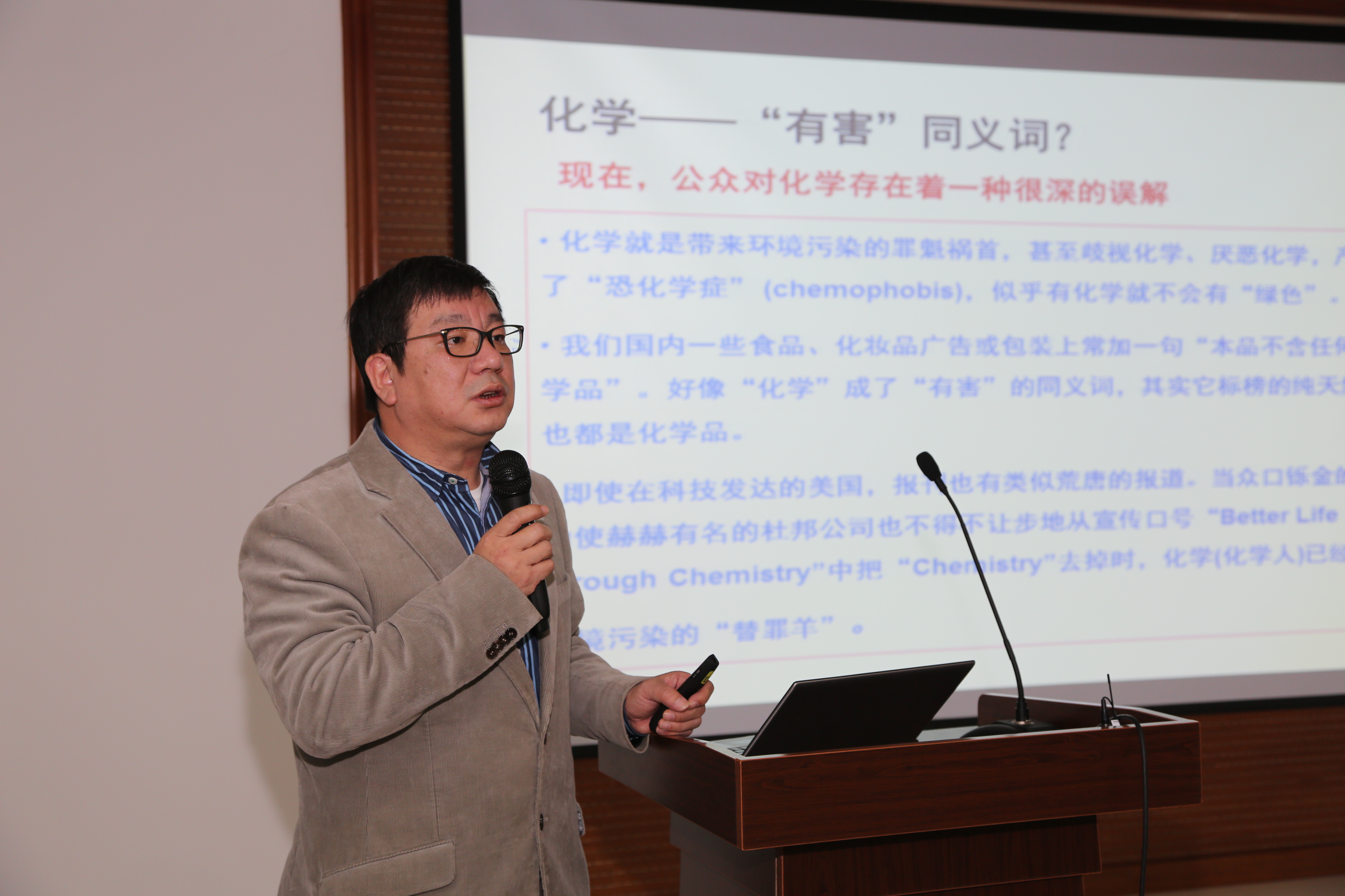 在报告中,赵东元院士首先以“公众对化学的误解,认为化学是带来环境污染的罪魁祸首”为切入点,形象地阐述了化学是社会迫切需要的一门中心科学,强调化学与信息技术、生物技术、核技术、激光技术、航天技术、纳米技术息息相关,详细分析了公众对化学的误解以及现今出现了“恐化学症”等一系列简单但发人深省的问题,使在场的师生对化学重新有了一个全面系统的认识。同时,赵东元对介孔材料界面组装工程及其应用进行了详细的描述,他通过简单易懂的语言介绍了介孔材料界面组装的关键问题及其应用的社会价值。最后,他以三句话--“化学使人类丰衣足食”、“化学是人类使用新材料的源泉”、“选择了化学,就是选择了未来!”向在座师生强调了中国化学家的责任,鼓励大家投身化学事业,勇挑重任。报告会后,赵东元就一些研究热点与在座师生进行了亲切的讨论与交流,分享了提高化学科研兴趣的途径,并提出了对大学生成长成才的建议与要求。