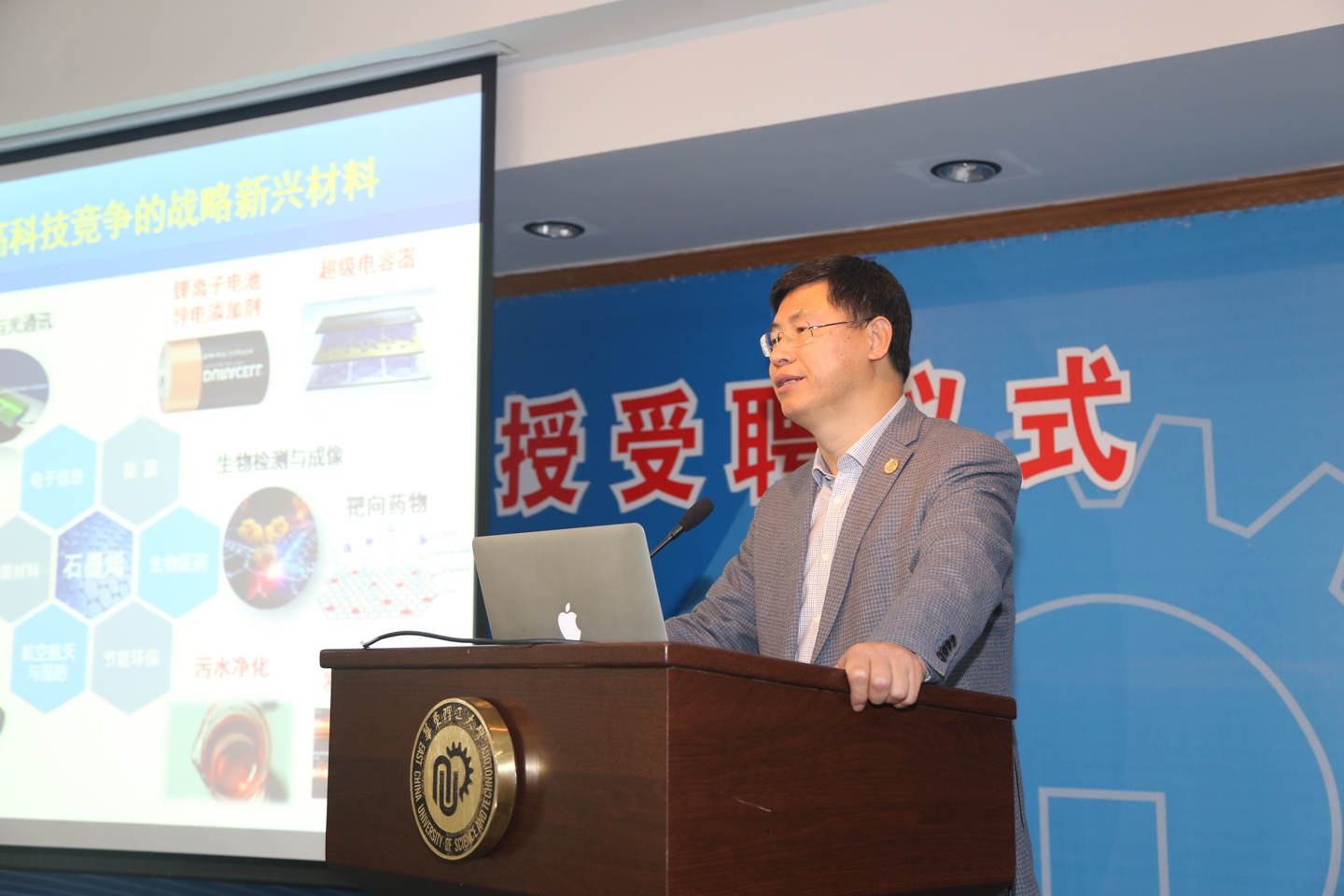 12月7日,中国科学院院士刘忠范教授受聘365英国上市集团官网名誉教授仪式在365英国上市集团官网逸夫楼隆重举行。副校长刘昌胜、校党委常委田禾院士、化学与分子工程学院院长朱为宏教授等出席了受聘仪式。仪式由田禾院士主持。田禾院士介绍了刘忠范院士的学术成就,刘昌胜副校长代表学校致辞、宣读聘书,为刘忠范院士颁发了名誉教授聘书并佩戴校徽。