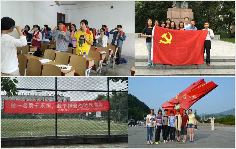 M154党支部在第三阶段的学习教育中开展了以学习明代民族英雄于谦英雄事迹为中心的系列活动,通过深刻了解于谦的光辉事迹使支部成员深刻领会“担当”对于国家和民族的巨大作用,通过学习号召支部成员树立当代共产党员的使命感和责任感。在总结阶段,该支部开展了横幅签名活动,支部成员将自己在这一系列活动的感想凝练成简短的话语写在横幅上,喊出他们的口号:“做一名勇于承担敢于担当的时代青年。”部分支部在这一阶段的学习教育中,自发围绕纪念长征胜利80周年开展了丰富活动,如M151支部带领支部成员重温了红军长征的艰辛历史,通过观看“红色追寻:三个年轻人的长征路”这一直播节目带动了大家对了解长征背后的故事的兴趣,接着进行了在中国地图上画出长征路线的趣味游戏,由支委为大家讲解“七根火柴”、“半截皮带”等经典长征故事,最后在支部书记的带领下,全体支部党员举着鲜艳的小红旗重温入党誓词。分析化学党支部以“追寻红色足迹,重温革命历史”为主题,在第三阶段的学习中开展了一次井冈山红色之旅的专题组织生活。大家在井冈山追寻革命前辈的足迹,回顾中国共产党星星之火燎原全国的发展历程,体会当年红军经历的各种艰辛和困难。在追寻红色足迹的旅途中,党员们从井冈山先烈先辈的事迹中体会到什么是“讲奉献、有作为”,并围绕第三阶段的主题展开了踊跃的交流。在总结交流中,大家认为通过井冈山红色之旅回顾了中国革命的历史,重温当年的革命理想,更加激励大家对照“四讲四有”的标准做新时期的合格党员。