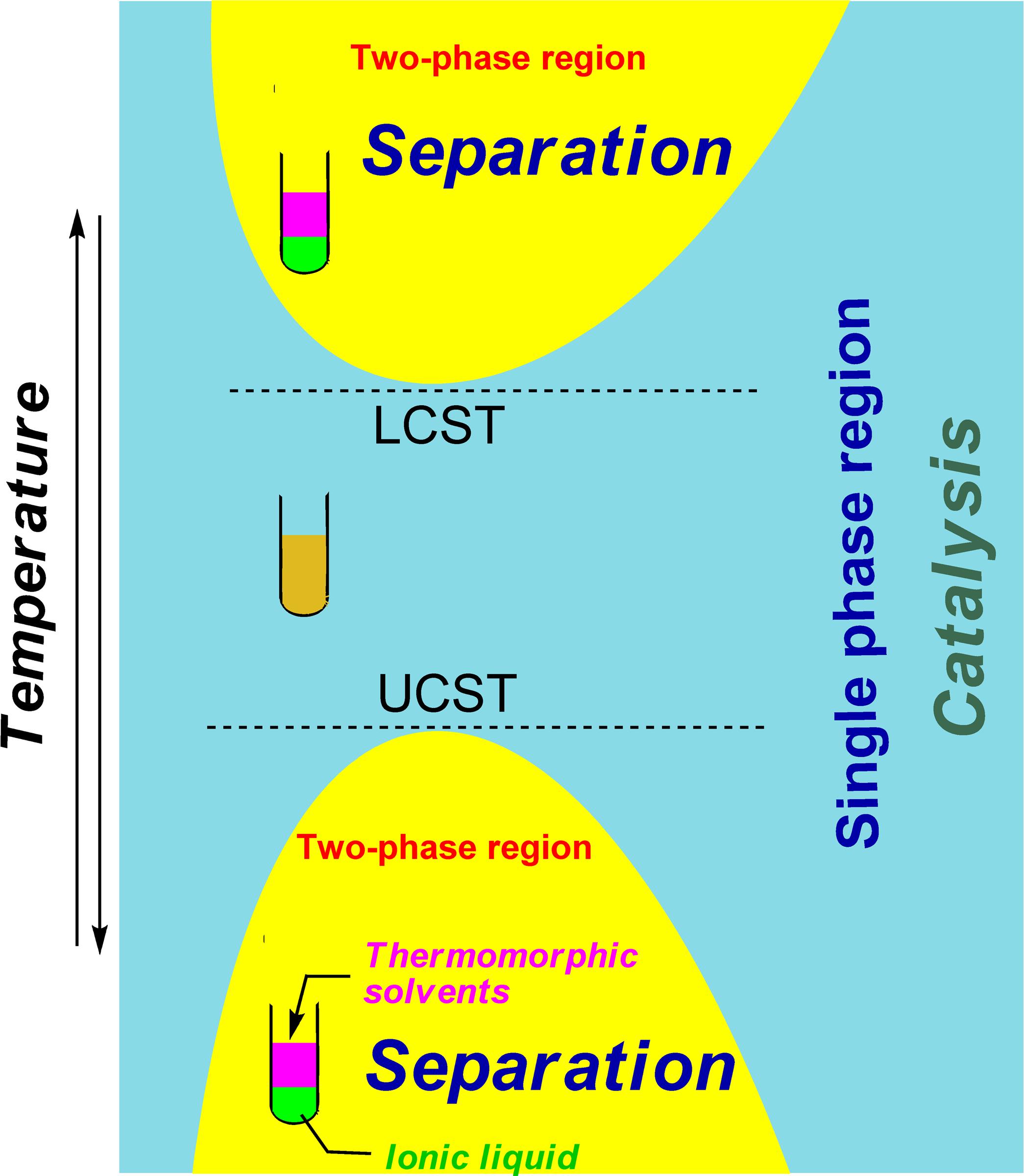 离子液体是由有机阳离子和不同的阴离子组成的有机盐。由于离子液体特殊的物理化学性质使其在催化,材料化学,电化学以及生物质转化等都有很广泛的应用。温控型离子液体是特殊的一类功能化离子液体,其性质随温度的变化而改变。文章全面地介绍了各类温控型离子液体体系的基本性质,其中对该类体系呈现UCST和LCST的现象的原因进行了深入的讨论,重点阐述了这种特殊性质在催化领域的应用:这类离子液体参与的反应在反应过程中是均相,而反应后随温度变化则变成多相,从而实现催化剂和产物的清洁分离,该文最后也对温控型离子液体的发展前景进行了展望。侯震山教授课题组长期从事绿色介质方面的研究工作,在离子液体的性质研究和催化应用等方面取得了一系列重要的成果。