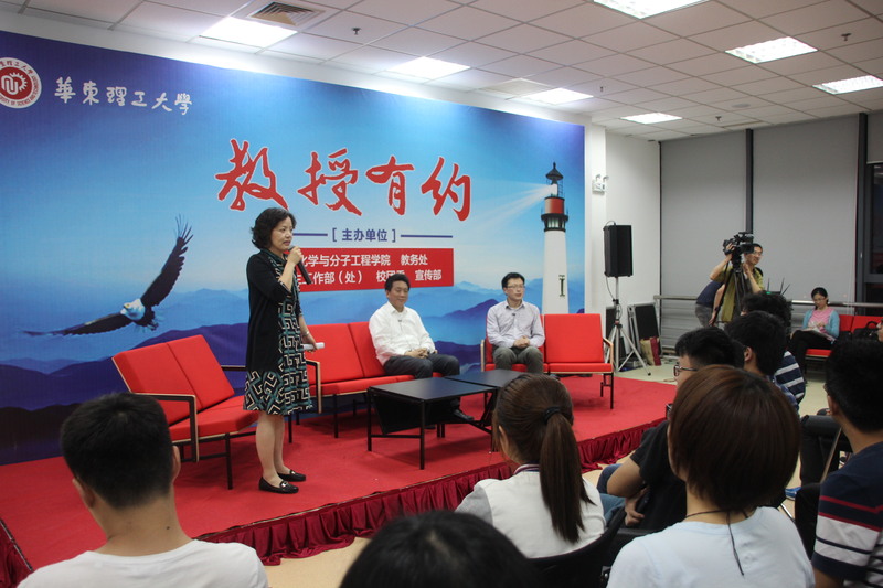 5月10日晚,由化学与分子工程学院及教务处等部门联合主办的又一场“教授有约”活动在奉贤校区图文信息中心603室举行。活动以“美丽化学 改变你我”为主题,邀请学院院长朱为宏教授、计算化学研究所王海丰副教授担任主讲人。主持人为徐首红教授。
