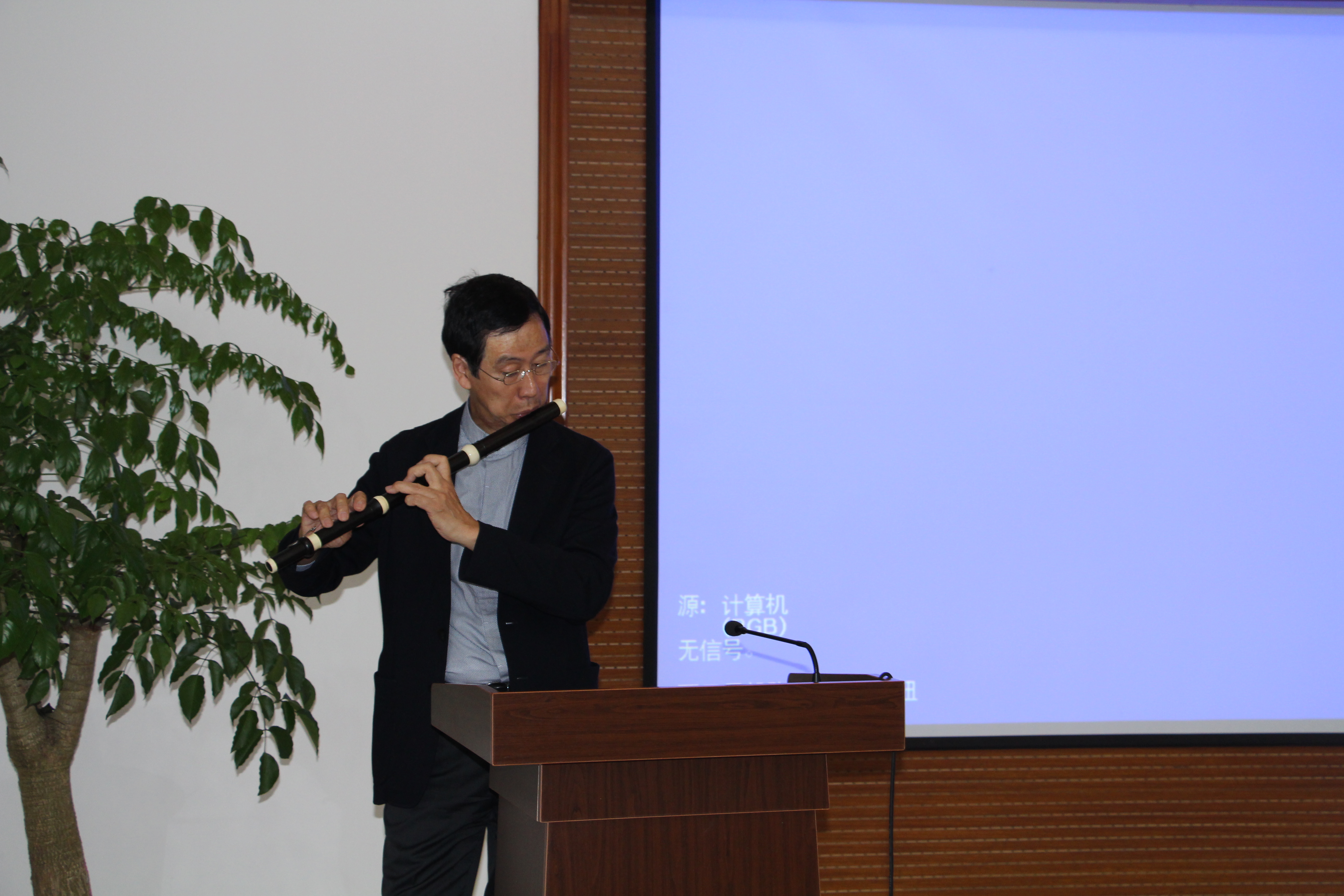 随后,热爱化学和音乐的Eiichi Nakamura教授为现场的师生表演了笛子独奏。并与师生一同参观了学院的实验室,朱为宏教授对学院的实验室平台规划和建设作了详细的介绍。