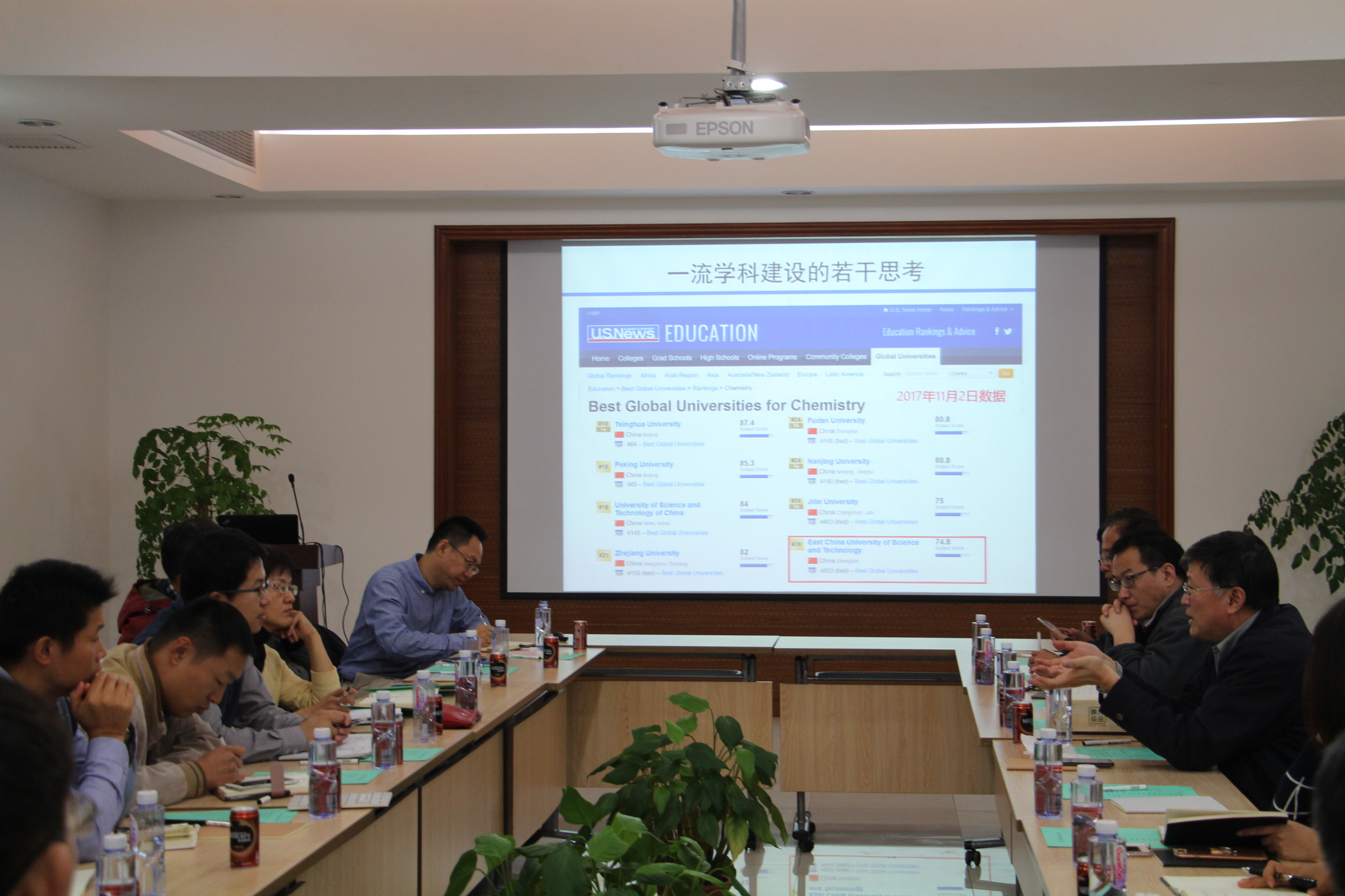 龙亿涛汇报了化学学科一流学科建设方案,围绕学科交叉、人才为本、科教融合的理念阐述了学科建设规划和目标。重点阐述了在推动人才引进、重大仪器平台建设,以及化学学科一流学科平台对促进化学、材料、生物、化工、药学、环境等多学科交叉融合方面的思考。结合国际多个权威学术机构学科排名指标分析,指出化学学科建设发展危机和瓶颈,强调当下必须资源统筹兼顾、协同发展,完善考核和评估机制。