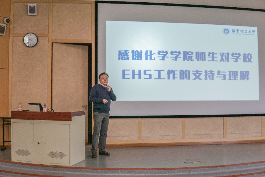 4月12日下午,化学与分子工程学院在七大多媒体教室举行实验室常规事务及安全管理培训。校采购与招标管理中心副主任吴炎、校实验室与装备处副处长靳文浩以及校实验室与装备处副处长、校安全环保办主任徐宏勇为化学学院全体18级近300名研究生进行了培训讲座。学院党委书记张文清、常务副书记高永煜和实验室安全助理孙学芹到场参加。