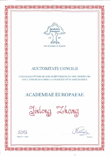 2019年6月,张金龙教授因其在光催化领域作出的突出贡献当选为欧洲科学院外籍院士。受聘典礼于2019年10月23日在巴塞罗那的欧洲科学院-巴塞罗那知识中心举行。张金龙教授及2018年、2019年当选的所有新院士均受邀参加了新院士庆典仪式。同时,10月23日至25日在同一地点召开了第31届欧洲科学院年度大会和第八届欧洲青年学院会议(Building Bridges 2019)。欧洲科学院是在英国皇家学会和欧洲其他国家科学院的倡议下于1988年成立的,是全欧洲范围内唯一一家拥有来自欧洲理事会国家和世界其他国家的个人会员(约3900个会员)的科学院。