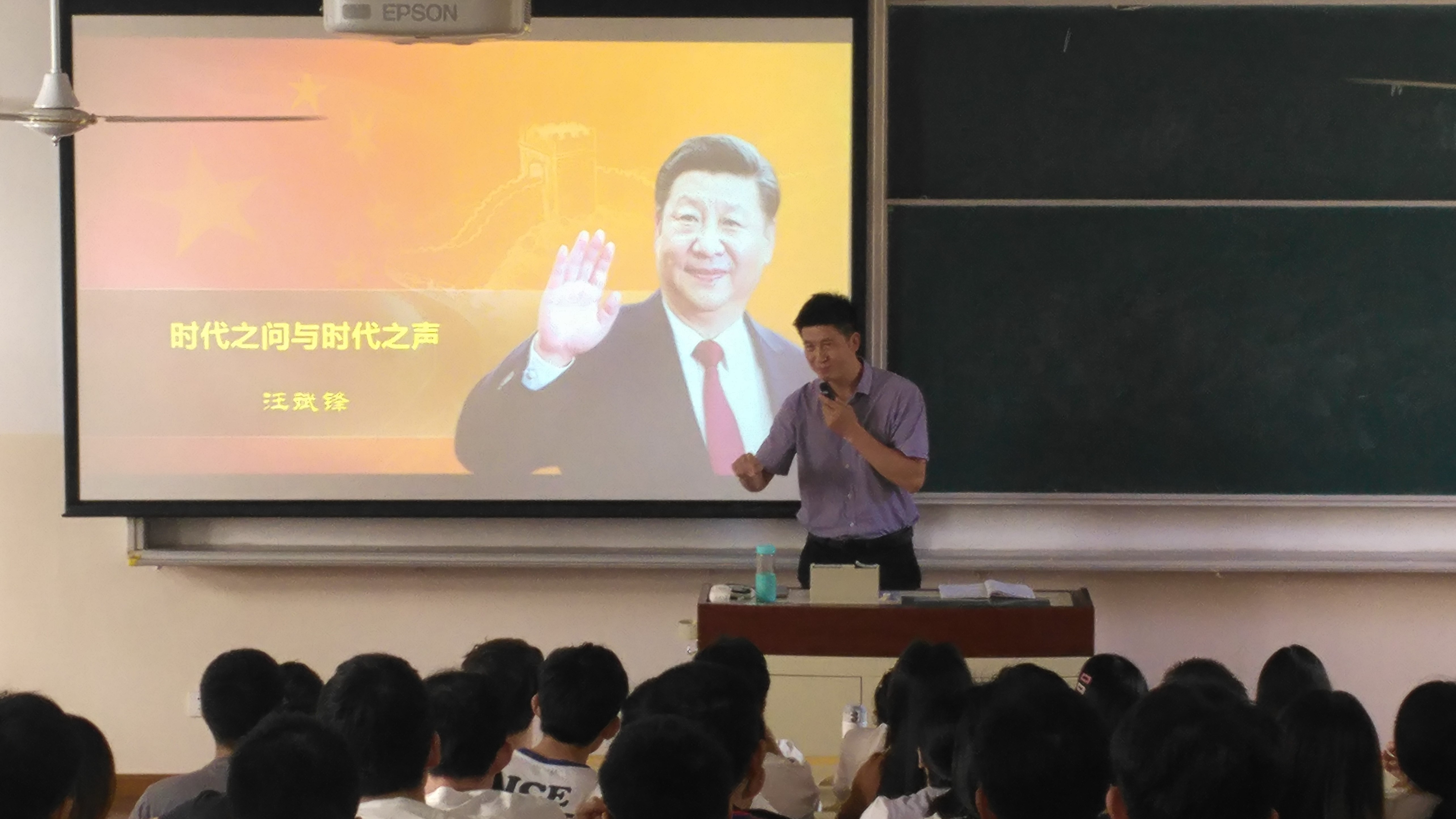 汪斌锋副教授以《时代之问与时代之声》为题,结合我国所处的发展阶段和时下的社会热点问题展开解析。中华人民共和国成立70周年以来,中国逐步从站起来到富起来到强起来,在每一个发展阶段里,广大党员同志都发挥了重要作用。在新时代,社会主要矛盾发生变化,在中国日益走进世界舞台中心的过程中,国家的发展面临着新的挑战,比如中美贸易战等热点问题。基于此提出了一个时代之问:中国特色社会主义的中国将往何处去?在外有大国博弈,内有发展瓶颈的中国社会发展关键时刻,新时代的每一个问题和挑战都需要广大党员同志们继续“不忘初心、牢记使命”,坚持不懈的奋斗。