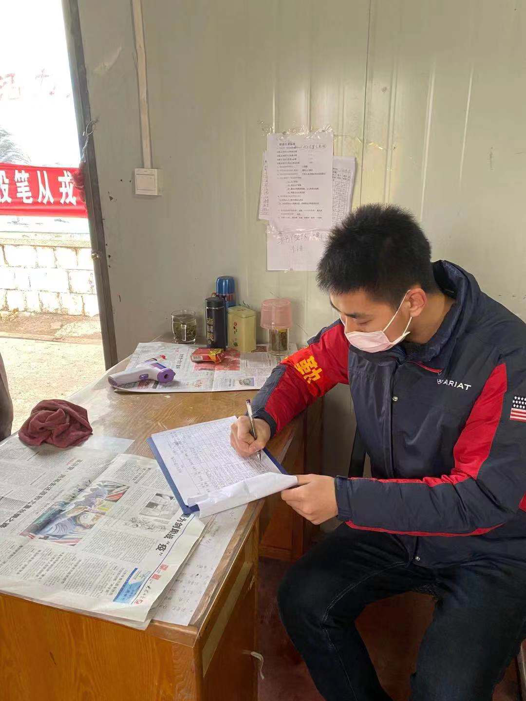 在疫情的进一步发展的情况下,我们乡村也开始进一步的防控工作,在村口设置卡点,进行查控工作。身为一名学生党员,我也希望在这场疫情防控的阻击战中贡献出自己的一份力量,因此成为了卡点值班志愿者的一员。在值班的期间,我们遇到外来的人员,会及时进行劝返。对每一位进出的村民登记、外出原因调查、体温检查,并同时宣传做到勤洗手,多通风,戴口罩,少外出,不聚会等防范工作。对于超出合理外出范围的村民进行在家隔离措施,在这次志愿报名中,不仅仅有很优秀的老党员,还有我们这样的新兴力量,更多的是自愿付出的人民群众们。虽然目前还处于疫情防控的关键期,但我相信只要我们所有人携起手来,共同努力,就一定会取得最后战“疫”的胜利!