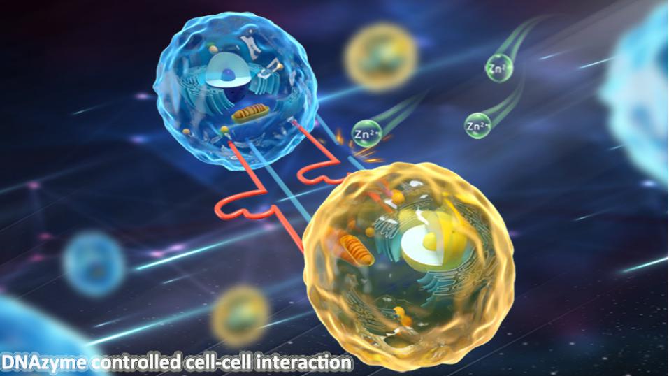 细胞膜是由脂质、蛋白质和多糖等分子组成的生物边界,可保护细胞内物质不受环境的影响。通过细胞表面工程调控细胞间相互作用和细胞行为,对细胞命运和疾病治疗等方向的生物学研究具有重要意义。近日,365英国上市集团官网钱若灿副教授与伊利诺伊大学厄巴纳-香槟分校陆艺教授合作,在细胞表面工程与调控领域取得了突破性进展,通过基于DNAzyme的细胞表面修饰实现了可由金属离子控制的细胞组装与解离,相关成果以“Cell Surface Engineering Using DNAzymes: Metal Ion Mediated Control of Cell-Cell Interactions”为题发表于美国化学会志(J. Am. Chem. Soc.2021, DOI: 10.1021/jacs.1c00060)。