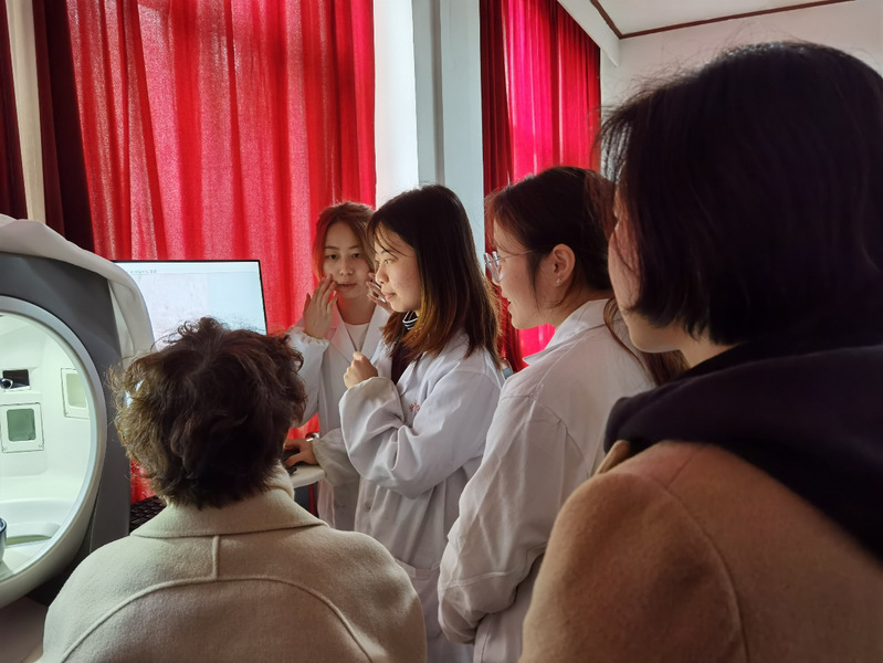 活动现场,感兴趣的老师还通过皮肤测试仪进行了专业皮肤测试。现场工作人员针对大家不同的皮肤问题,如干燥、敏感、细纹、色斑等,给出了一系列具体的护肤指导,建议大家做好皮肤清洁、保湿、防晒等日常护理。