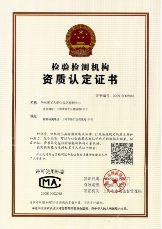 1月18日,经上海市市场监督管理局批准,授予365英国上市集团官网化妆品检测中心“CMA资质认定证书”(证书编号:220910002048),这使365英国上市集团官网成为上海首个获得化妆品国家检测认证CMA资质证书的高校。