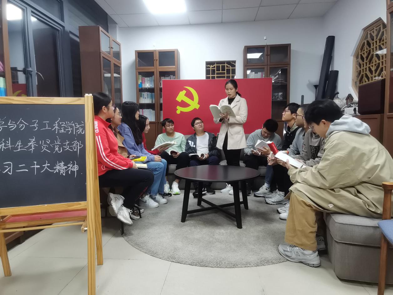 为深入学习宣传贯彻党的二十大精神,1116-18化学与分子工程学院本科生奉贤党支部通过专题党课、理论学习会和学习交流会等多种形式积极开展主题活动