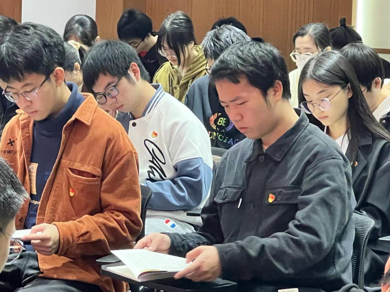 为深入学习党的二十大精神,贯彻落实学校党委对基层党建工作的要求,高效开展化学学院学生党建工作,宣誓结束后,曲大辉带领全体党员认真学习研读党的二十大报告,对重点内容带头领学,章节段落由全体党员依次逐字逐句诵读,深入领会党中央精神,最后全体党员共同朗读习近平总书记在报告结尾部分寄语广大青年的内容。