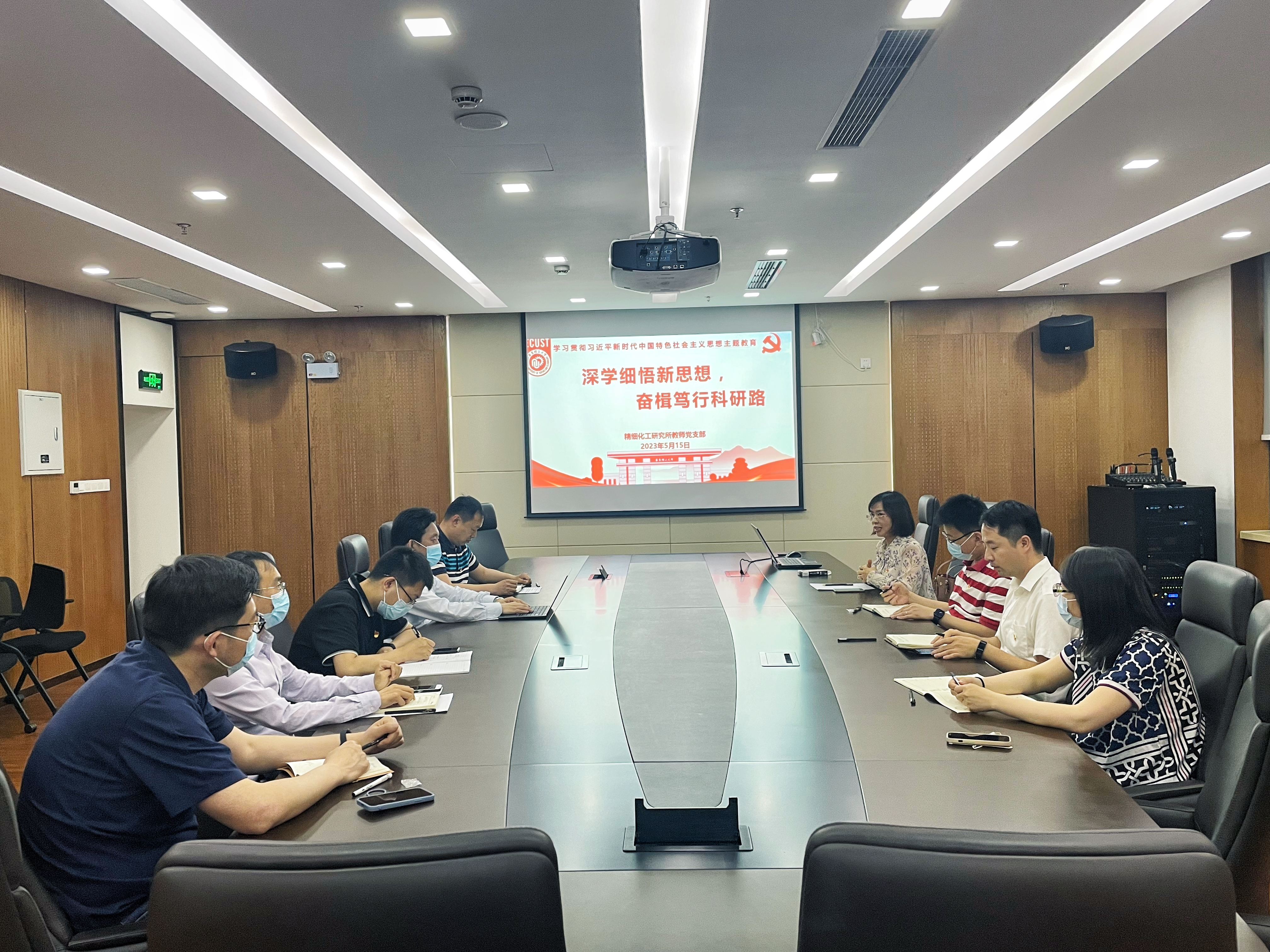 为深入学习贯彻党的二十大精神,推动学习贯彻习近平新时代中国特色社会主义思想主题教育走深走实,5月15日晚,化学与分子工程学院精细化工教师党支部开展“深学细悟新思想,奋楫笃行科研路”专题组织生活会暨主题教育座谈活动,为支部青年教师党员送上了一份集理论教育学习、前沿工作分享、科研心得交流、思想碰撞沟通于一体的“学习晚宴”。副校长朱为宏、化学学院院长曲大辉及精细化工教师党支部10余位青年教师参加了此次活动。活动由精细化工研究所副所长、支部党员梅菊主持。