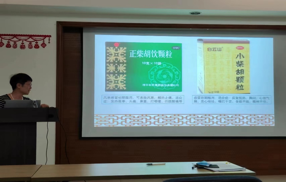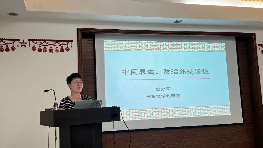 讲座主讲人为倪力军老师,她主要向大家介绍了中医对人体健康的认知以及中医养护身体的基本准则和注意事项;中医对外感的看法与治则、外感的分型、常用治疗外感中成药药物的组成及其适应类型、外感药物(中成药及西药)服用注意事项等。