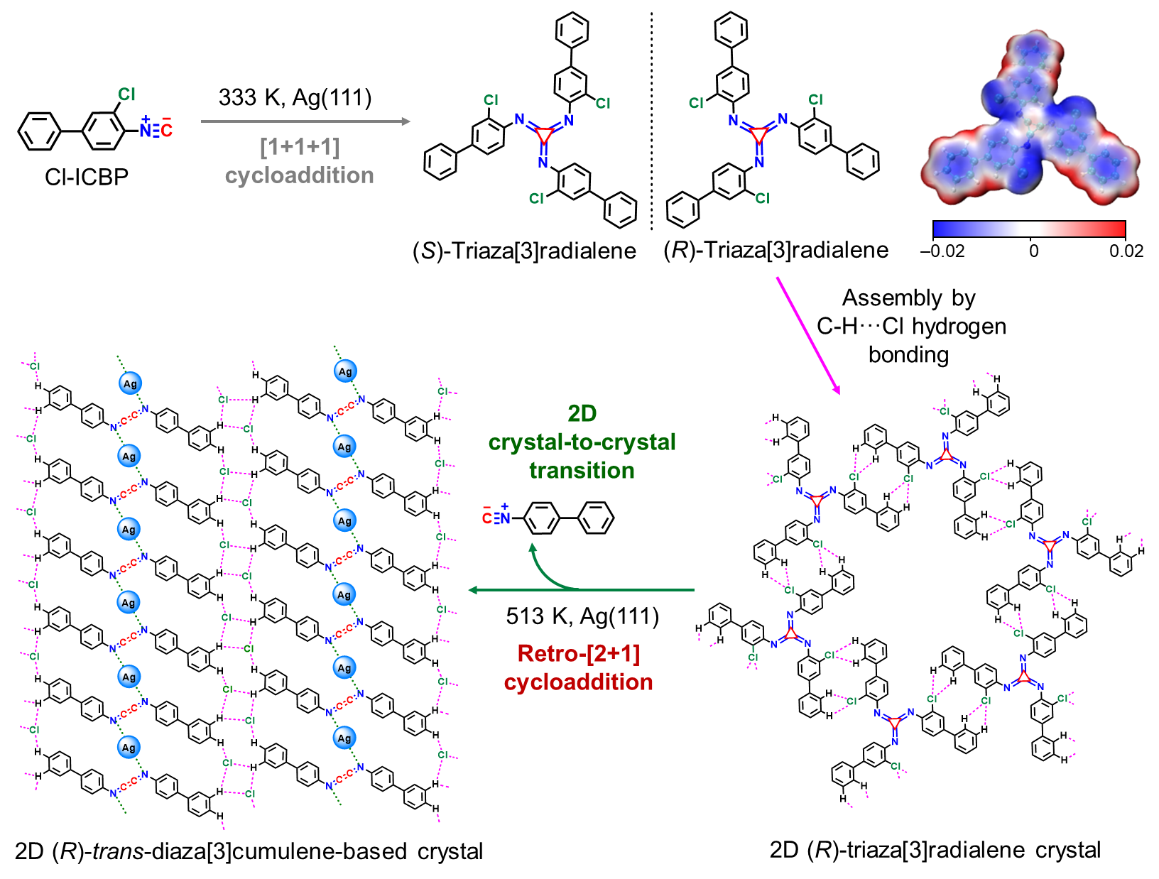 图一:从异腈向三轴烯到累积三烯二维晶体的定向转化