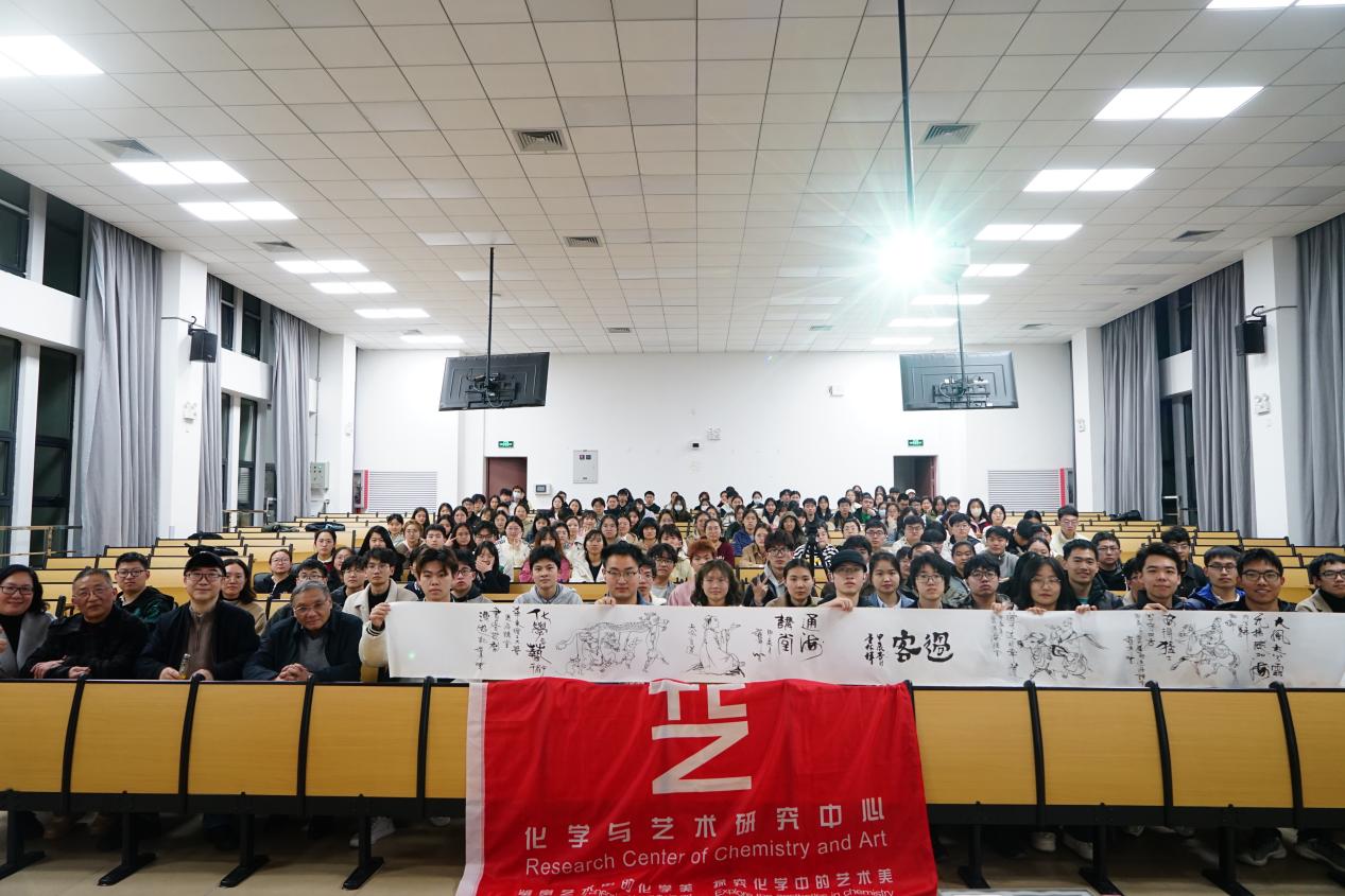 王利民教授补充道,艺术与科学是一个硬币的两面,它们是人类活动中非常重要的部分,都以人类的创造性为基础,都追求着深刻性、普遍性、永恒性,“原天地之美而达万物之理”。“化学与艺术”教学体系强调将化学专业学习与人文修养结合起来,做到理工渗透、文艺理结合。此次活动带领大家体会笔墨丹青中的化学之美,这不仅是艺术与科学的完美融合,更是传统文化与现代知识的一次精彩碰撞。活动现场座无虚席,气氛热烈,师生们共同沉浸在这场独特的文化之旅中。