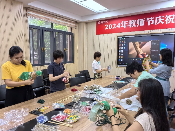 教师节庆祝大会后,学院党政办精心组织了艾草养生锤手工制作活动,引导教师在繁忙工作之余注重身心健康。