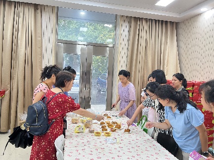 椒盐百果、火腿、椰蓉、豆沙……除了传统口味,还有学校自制的特色月饼,让闻香而来的老师们陷入了选择难题,每个人都忍不住多尝了几块。