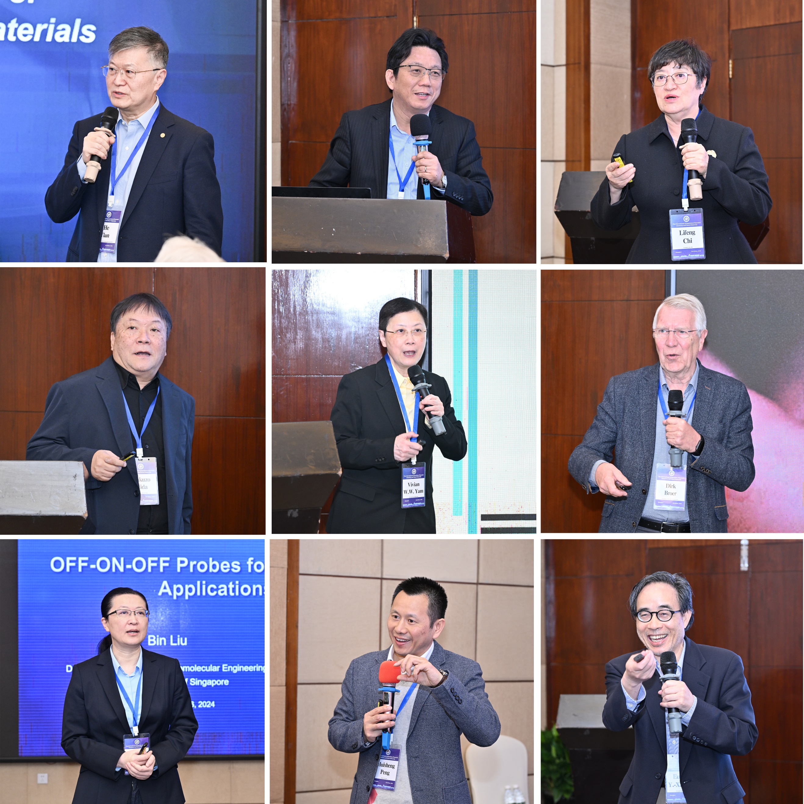 Takuzo Aida院士在“动态功能超分子聚合物材料”的报告中,讲述了其利用非共价键组装设计动态功能材料的设计思路和研究进展,并着重介绍了其近期开发的“超分子塑料”有望实现聚合物材料的可控降解与回收。Vivian W. W. Yam院士在“分子设计与组装实现激发态调控、纳米结构与功能应用”的报告中,讲述了基于金属和分子的新型光功能络合物的分子设计及其自组装策略用于设计光电功能材料的研究进展。Dirk Broer院士在“马达化液晶产生手性运动”的报告中,讲述了在液晶软物质中引入手性分子马达,实现对液晶软物质的光控手性组装与定向驱动。Eugene Y.-X. Chen教授在“可持续单-材料聚合物产品设计”的报告中,讲述了通过引入动态化学键,使废弃混合塑料实现无需按类分离的动态回收策略。Bin Liu院士在“OFF-ON-OFF探针用于生物医学应用”的报告中,讲述了如何通过分子工程设计智能荧光分子探针,实现针对靶向细胞的精准识别、荧光成像以及治疗。迟力峰院士在“从正烷烃到共轭聚烯烃及其芳环化的表面在位化学”的报告中,讲述了利用金属单晶表面的结构及催化效应,在温和条件下实现正构烷烃的聚合,提出了分子在表面上选择性活化和偶联的新策略。彭慧胜院士在“纤维材料和器件”的报告中,讲述了通过合成全新组成和结构的导电高分子体系,制备多尺度螺旋取向组装的高分子复合纤维,构建新型高分子纤维器件,并在基础研究到实际应用方面取得了进展。朱为宏院士在“内源手性位阻型二噻吩乙烯光开关”的报告中,讲述了利用位阻型烯桥设计,开发出高量子产率、内源手性、耐疲劳的高性能二噻吩乙烯光开关,并以此作为手性光开关,实现液晶软物质的光控多模态调控。
