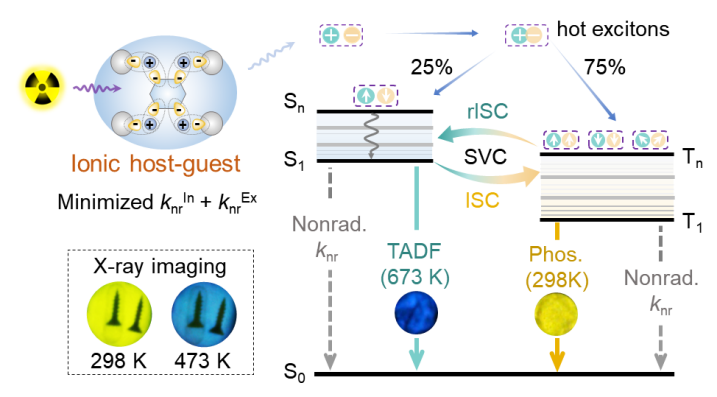 图片说明:基于双重限域离子主客体策略构建耐超高温的有机三线态闪烁体