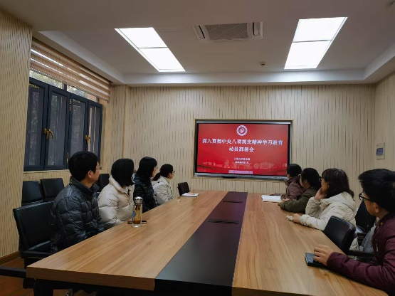 4月1日,学院机关党支部召开深入贯彻中央八项规定精神学习教育动员部署会。会上,支部书记逄索传达相关会议精神和实施方案,并围绕中央八项规定实施细则精神和《习近平关于加强党的作风建设论述摘编》开展集体学习。随后,逄索通报了教育系统违反中央八项规定及其实施细则精神典型案例,带领支部成员开展专题学习警示教育。后续,支部成员结合自身工作实际,对如何更好深入贯彻中央八项规定及其实施细则精神和防范工作中的违规风险进行了交流讨论。