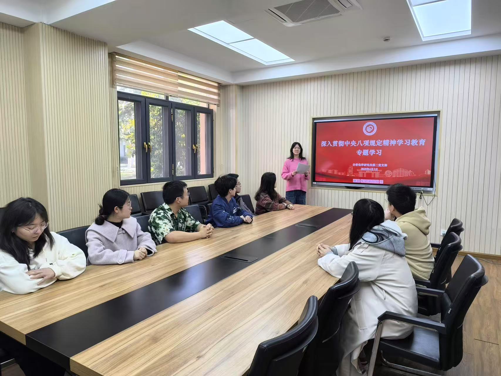 4月2日,分析化学研究生第二党支部开展深入贯彻中央八项规定精神学习教育动员部署暨专题学习。会议从深入贯彻中央八项规定精神学习教育的具体要求、学习中央八项规定精神及违反中央八项规定精神清单、深思“为何学”、勤思“学什么”、常思“如何学”等方面展开学习。支部成员积极反馈学习心得,筑牢思想根基,并表示在日后工作生活中将严格贯彻落实中央八项规定精神,保持良好的作风。