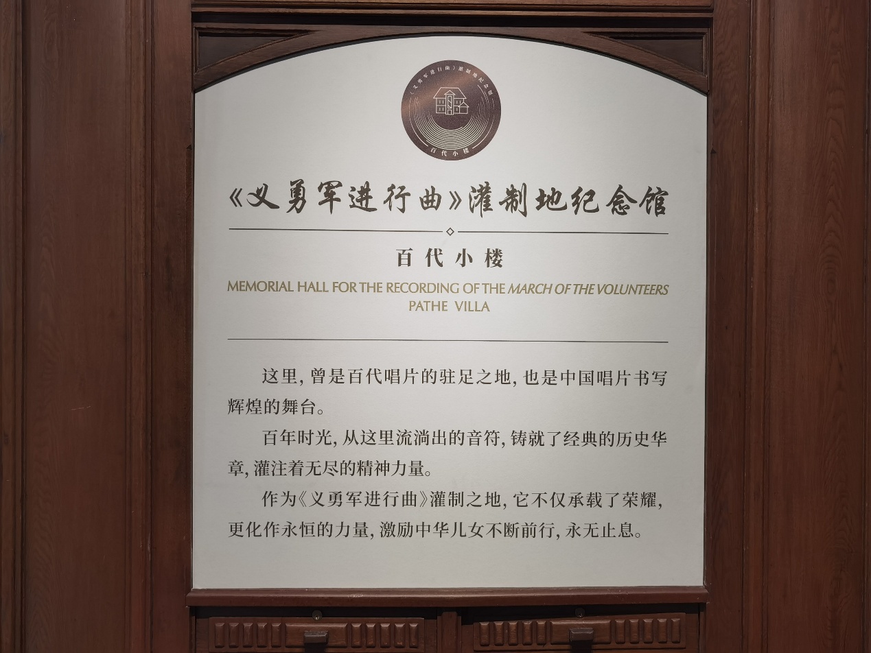 百代小楼作为上海市第一批不可移动革命文物,承载着党和人民英勇奋斗的光荣历史,记载了中国革命的伟大历程和感人事迹。《义勇军进行曲》原是电影《风云儿女》的主题曲,由田汉作词、聂耳作曲。19355月,在时任上海百代唱片公司音乐部主任任光的主持下,百代公司邀请电通公司歌唱队,在公司录音棚内录下了这首歌,灌制了首版《义勇军进行曲》唱片。90年后的今天,化学实验教学中心党支部成员走进这栋凝聚着时光与旋律的小楼,探寻红色基因、追寻红色足迹,聆听历史强音。