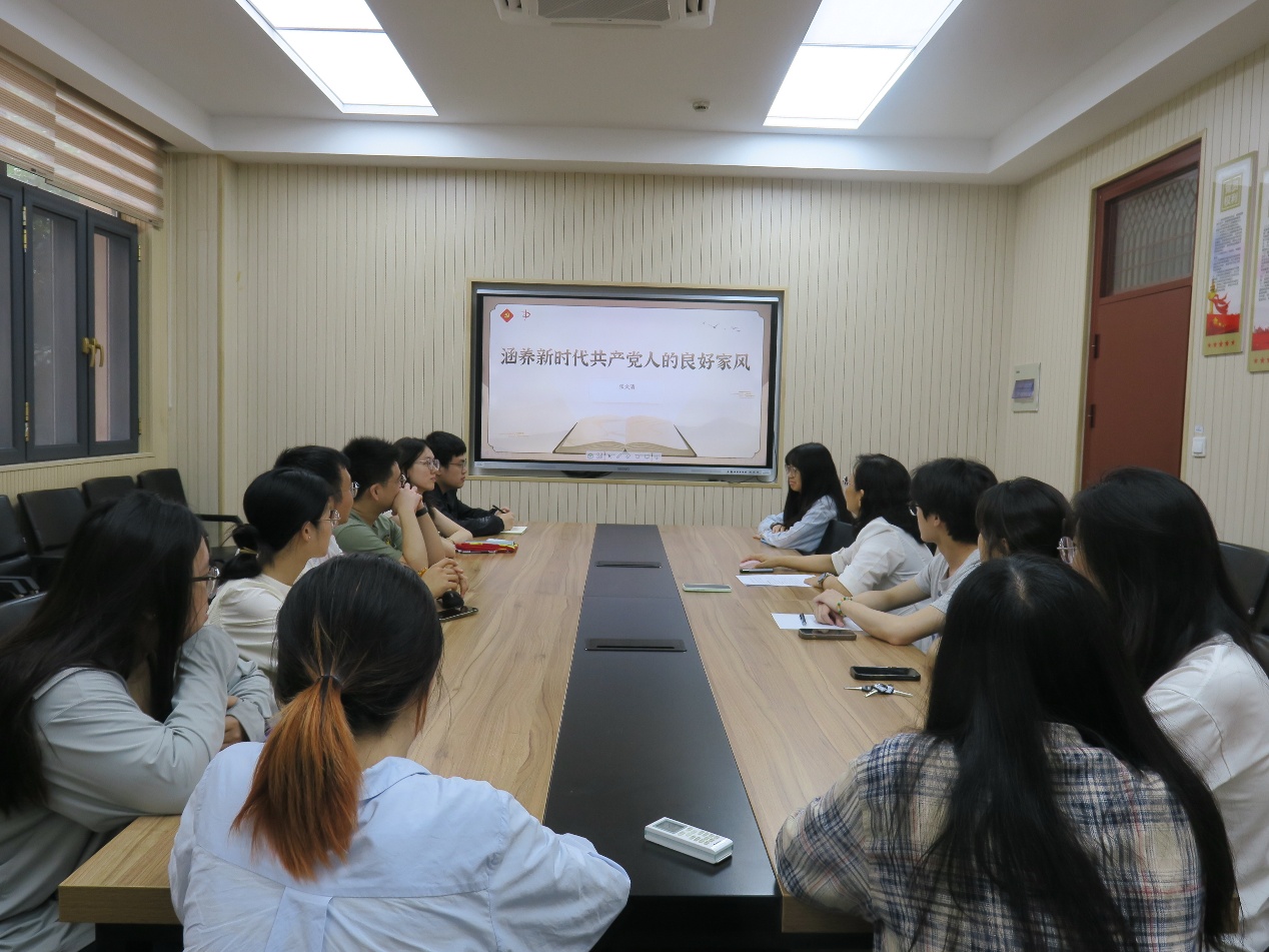 为进一步加强党员领导干部与党支部之间的联系,充分发挥党员领导干部的引领示范作用,推动党支部建设高质量发展,6月12日,学院党委书记张文清为对口联系党支部—分析化学研究生第二党支部党员讲授主题为“涵养新时代共产党人的良好家风”的专题党课。