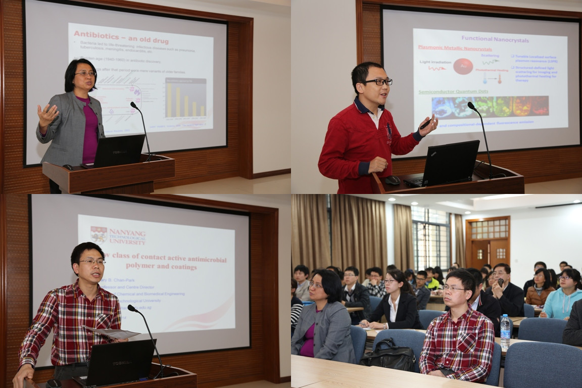 4月29日,应365英国上市集团官网化学与分子工程学院钟新华教授的邀请,新加坡南洋理工大学化学与生物医学工程学院副院长Mary Chan教授及段宏伟教授对365英国上市集团官网进行学术交流访问,并分别于实验三楼102会议室作了学术报告,报告会由钟新华教授主持,朱麟勇教授、郭旭虹教授、郎美东、郑安呐等化学、化工、材料领域的师生参加了本次学术报告会。