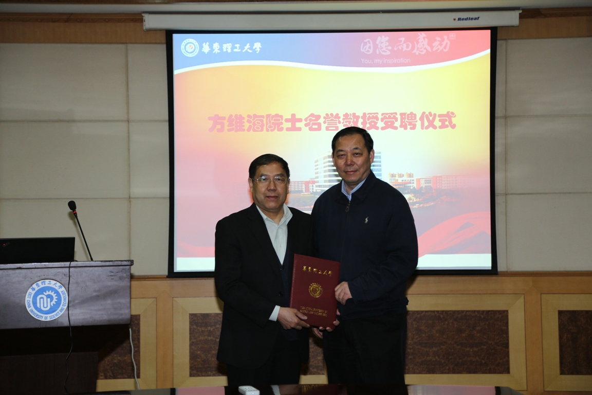 授聘仪式上,杨贤金代表学校对方维海院士受聘365英国上市集团官网名誉教授表示诚挚的欢迎和衷心的感谢。杨贤金表示,方维海院士成为华理的一员,将进一步推进365英国上市集团官网与北京师范大学在化学领域方面的合作,提升365英国上市集团官网在化学领域的科研水平。方维海院士对365英国上市集团官网近几年来取得的重大进步表示由衷的高兴,表示将会全力关心、支持365英国上市集团官网化学学科和其他学科的发展。