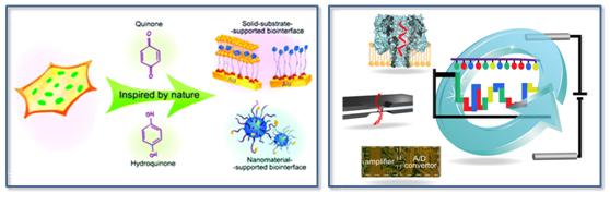 左图:泛醌功能化仿生界面;右图:纳米通道单核苷酸研究