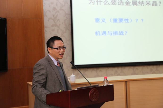 受聘仪式结束后,李亚栋院士做客第109期名师讲坛,为365英国上市集团官网师生作了题为《金属纳米晶、团簇与催化》的学术报告。他首先提出了三个问题:为什么要选金属纳米晶?金属纳米晶的意义是什么?金属纳米晶的机遇和挑战是什么?随后,围绕这三个问题,介绍了他所带领的研究团队在金属纳米晶的合成、金属纳米晶在小分子的活化与催化反应中的活性、金属团簇与纳米晶进展等三个方面的研究工作。对于金属纳米晶的合成,详细阐述了纳米晶合成方法学的建立,实现合金与金属间化合物纳米晶的可控合成;研究了纳米晶作为催化剂在氧化偶联、肉桂醛的选择性加氢、丙酮加氢生成异丙醇以及二苯醚催化加氢裂解等反应中的活性,通过实例说明纳米晶在某些反应中的特殊催化性质;通过金属纳米晶的研究,提出了自己对金属团簇催化本质的认识,并希望通过后续的研究,能够丰富和发展化学键理论。报告后,李亚栋院士耐心细致地回答了现场老师和同学们的提问。在场师生被李亚栋渊博的学术知识、高尚的学识修养等深深感染,现场一次次响起热烈的掌声。
