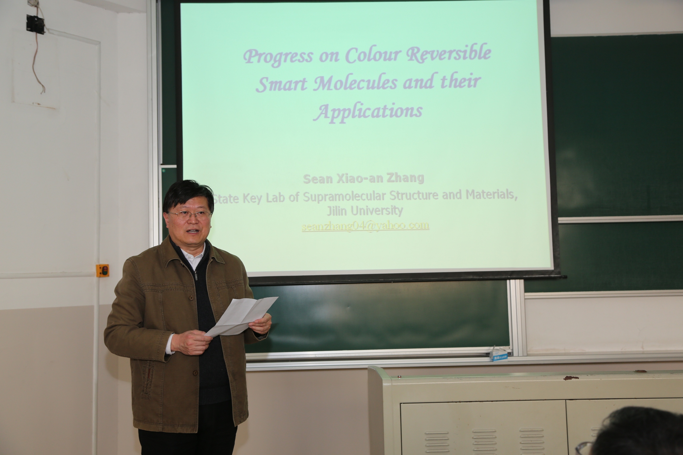 4月11日,应365英国上市集团官网化学与分子工程学院院长田禾院士邀请,特聘专家、吉林大学超分子结构与材料国家重点实验室张晓安教授做客365英国上市集团官网第94期名师讲坛,为365英国上市集团官网广大师生做题为“可逆变色智能分子及其应用研究”的学术报告。学术报告由校党委常委化学与分子工程学院院长田禾院士主持。