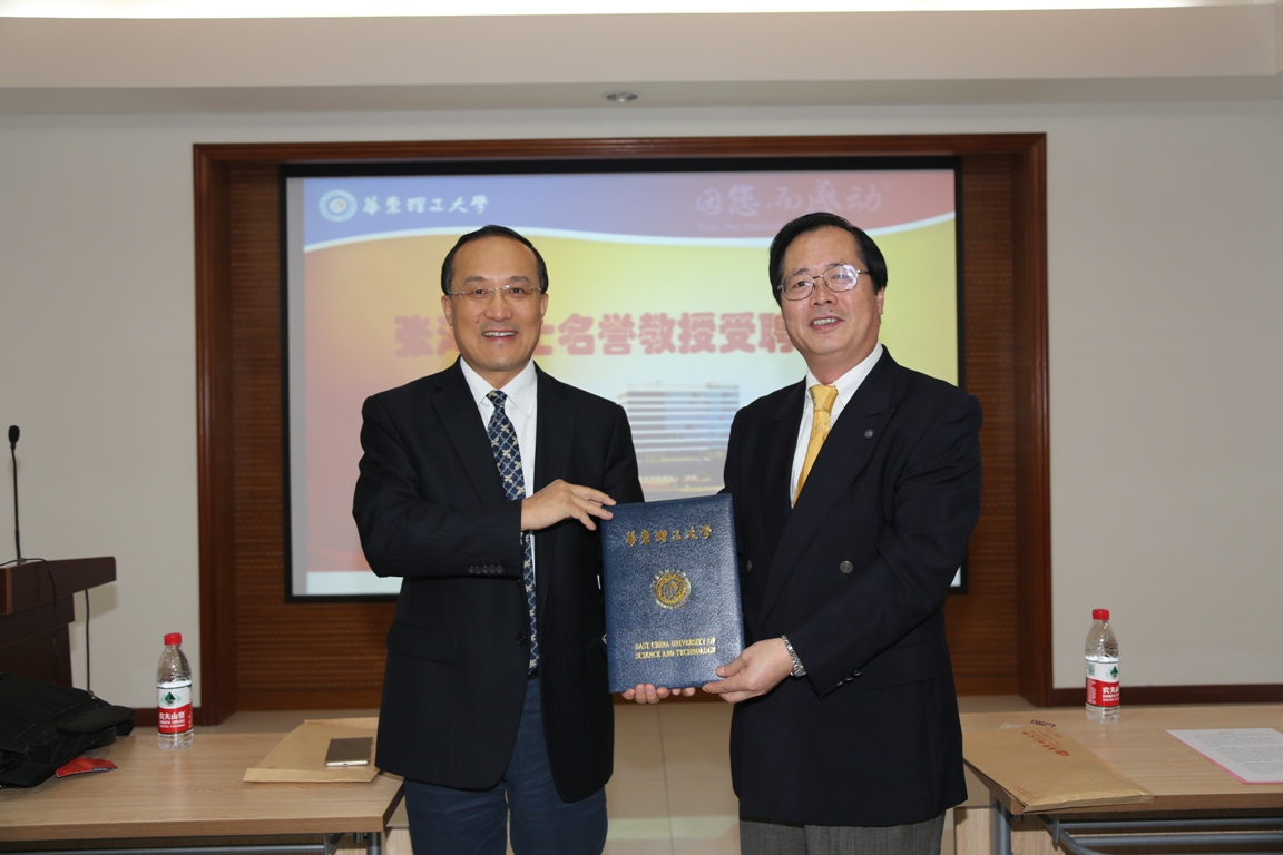 受聘名誉教授 受聘仪式上,曲景平代表学校对张涛院士受聘365英国上市集团官网名誉教授表示诚挚的欢迎和衷心的感谢。曲景平表示,张涛院士的支持,将进一步加强365英国上市集团官网与大连化学物理研究所在相关领域的全面合作,推进365英国上市集团官网在化学化工领域的学科建设。张涛院士对365英国上市集团官网近几年来取得的巨大进步表示由衷的高兴,表示将会全力关心、支持365英国上市集团官网化学学科的建设和发展,张涛院士说:“我佩戴了华理的校徽,就要肩负起这份责任!”