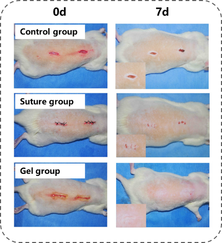 图E:应用示例三:作为急性创面免缝合材料 基于以上“光偶联反应”原位凝胶技术具有生物安全、简单易用及特有的组织粘附与整合的优势,朱麟勇研究团队在完成对以上技术的原料、制备、产品及应用的知识产权全面布局的基础上,进一步与相关医学单位和企业合作,实施基于该原创技术的“医用光敏生物胶”产品的临床转化,先后完成了材料的中试生产、储存稳定性、动物模型的有效性以及第三方安全性认证(CFDA认证机构)。 “期望该‘医用光敏生物胶’产品能在近期内通过CFDA创新医疗器械通道,最终获批三类医疗器械注册证,实质上突破当前‘纤维蛋白原’和‘氰基丙烯酸酯’医用胶在潮湿组织表面无粘接以及生物毒性等应用瓶颈。”朱麟勇教授说。 截至目前,围绕“光偶联反应”原位凝胶技术,朱麟勇教授课题组已申请国内发明专利6项,国际PCT专利3项;已获中国发明专利授权1项和美国发明专利授权1项,提交美国专利2项、欧洲专利1项、日本专利1项。 |