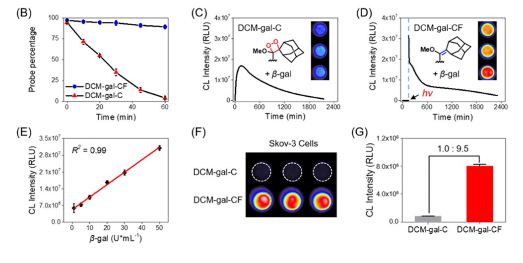 化学发光检测能够有效避免激发光散射及背景荧光干扰,彻底改变了对生物分子的在体成像能力,极大地推动了生命科学的发展并已在临床检测中广泛应用。但目前化学发光技术中的两类主要底物(辉光型与闪光型),都受制于高能量键断裂产生的不可控发光信号,因此实现化学发光技术的精准触发控制并且有效信号富集一直是其实际应用面临的重大挑战。 最近,365英国上市集团官网化学与分子工程学院、教育部前沿科学中心郭志前教授和朱为宏教授课题组创新发展了基于次序激活的双重锁定化学发光染料设计新策略,将识别过程和光子释放过程次序触发,成功实现了检测物的特异性识别与光控的次序性响应。相关成果以“A Sequential Dual-Lock Strategy for Photoactivatable Chemiluminescent Probes Enabling Bright Duplex Optical Imaging”为题,发表在《德国应用化学》Angew. Chem. Int. Ed., 2020, DOI: 10.1002/anie.202000165; https://onlinelibrary.wiley.com/doi/10.1002/anie.202000165。