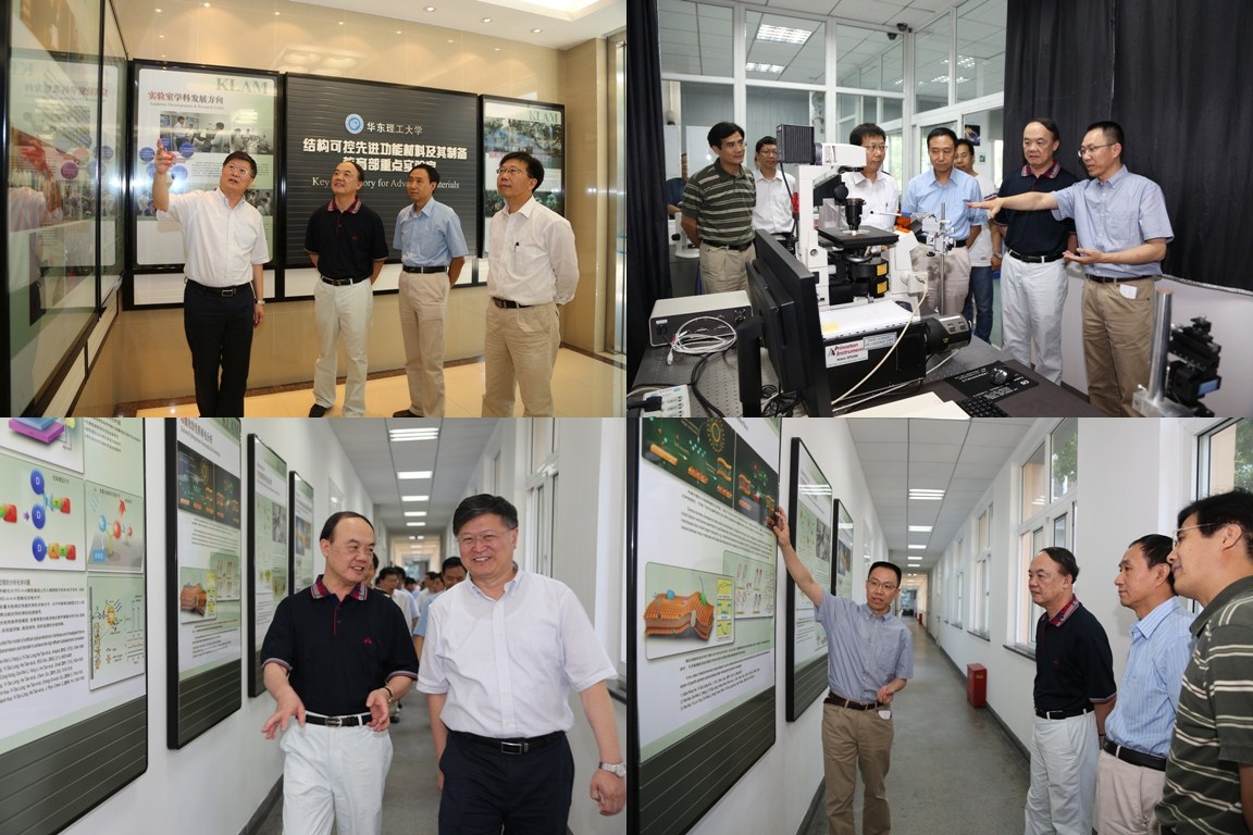 September 15th, 2014, led by deputy director of the National Natural Science Fund Committee Academician Yao Jiannian, the delegation of NSFC assessed and inspected the Innovation Research Groups Project “Optical-Electronic Analytical Chemistry on Interface” of our school. Members of the delegation are deputy director of the National Natural Science Fund Committee Yao Jiannian (Academician of Chinese Academy of Sciences), deputy director of the Standing Committee of Ministry of chemical science of NSFC Liang Wenping, discipline leader of Analytical Chemistry of NSFC Zhuang Qiankun, deputy director of chemical science comprehensive and strategic planning department of NSFC Huang Baosheng, secretary of NSFC Office Secretariat Feng Qi. President of ECUST Qian Xuhong (Academician of Academy of Engineering), vice president of ECUST Tu Shandong, ECUST party committee standing committee Tian He (Academician of Chinese Academy of Sciences), executive vice president of ECUST Research Institute Mou Bozhong, vice president of ECUST Research Institute Fu Rao, leader of innovation research group Long Yitao and all group members also attended the on-site inspection meeting.