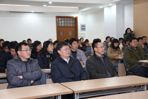 Invited by Prof. Tian He (Academician of CAS), Prof. Ju Huangxian of Nanjing University (Director of the State Key Lab of Life Analysis) visited our university. Prof. Ju first visited the Key Lab for Advanced Materials, and Prof. Tian introduced the Key Lab, School and Chemistry and Engineering as well as the research achievements of all fields in the Key Lab. After that, Prof. Ju attended the 113th "Famous Teacher Forum" and gave a lecture titled "Cell function and biomolecular detection and tracing platform - suggestions & experience of the innovation research team". Prof. Tian, research leaders of the key lab: Prof. Long Yi-Tao, Zhu, Weihong, Zhu Linyong, Hua Jianli, Xie Yongshu all attended the lecture.