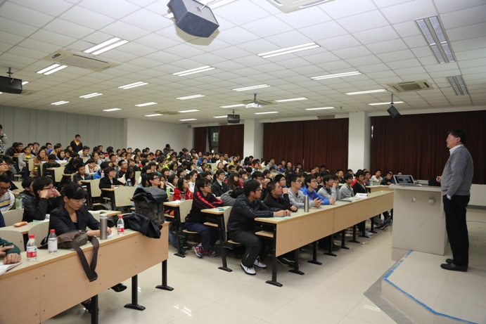 Nov. 21st, Prof. Tian He (Academician of CAS, Dean of School of Chemistry and Molecular Engineering) came to the Fengxian Campus and gave a lecture titled "Old Trees New Sprouts: Dyes and High-techs". All present students were inspired and impressed by the witty humourous expressions and vivid illustrations of Prof. Tian, thunderous applauses and laughters erupted from time to time in the lecture venue. "The lecture of Prof. Tian enlightened us to have a better understanding of our majors, inspired our interest in scientific research and directed a clear development for our four-year university study and future careers." stated the students.