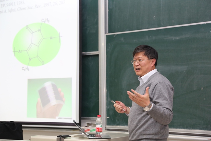 Prof. Tian started from the traditional batik process and extended to the analysis of the molecular structures of dye molecules. From the stability of the color of carrots (visual pigment) to the USA U2 High-altitude reconnaissance aircraft (infrared imaging), they all belong to the dye areas. Prof. Tian stated that the luminescent sensing is current research trend which could be applied in early tumor probing, non-destructive detection in military and etc. Through analysis of current development trend of world energy resources, he stated that, the solar energy is the abundant energy which could be utilized in the future. On the basis of transparency, flexibility and portability, future solar cells would be more fashionable and low-cost. Through overcoming the high energy-consuming and high-cost of LCD by organic luminescence, the OLEDs would have a broad market sharing in future computers and mobile phone displays. Another new technology --- Molecular Machines, will find themselves great values in the breakthrough of data storage, nano-materials, bio-mimics as well as photo-catalysis and etc.