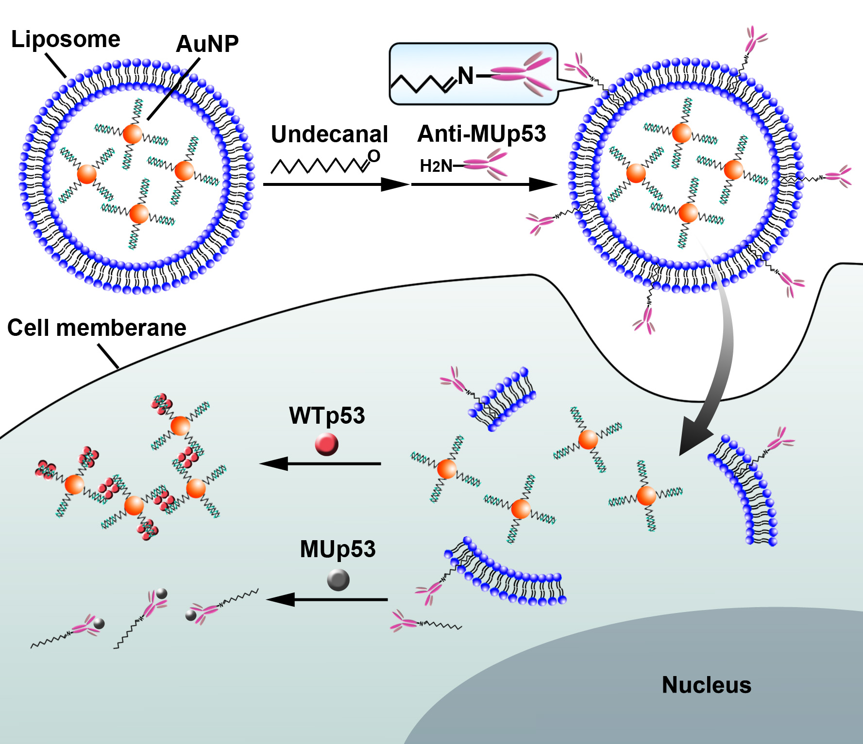 P53 protein pathways play important roles in the regulation of cell cycle and apoptosis. The abnormal expression of p53 is closely related to cancer genesis. Therefore, p53 protein has become a hot research issue in recent years. Prof. Yi-Tao Long group has achieved remarkable progress in the field of the in situ imaging and detection of intracellular p53 protein. The work entitled “Dual-Targeting Nanovesicles for In Situ Intracellular Imaging of and Discrimination between Wild-type and Mutant p53” has been published in Angew. Chem. Int. Ed. (DOI: 10.1002/anie.201510142) recently.