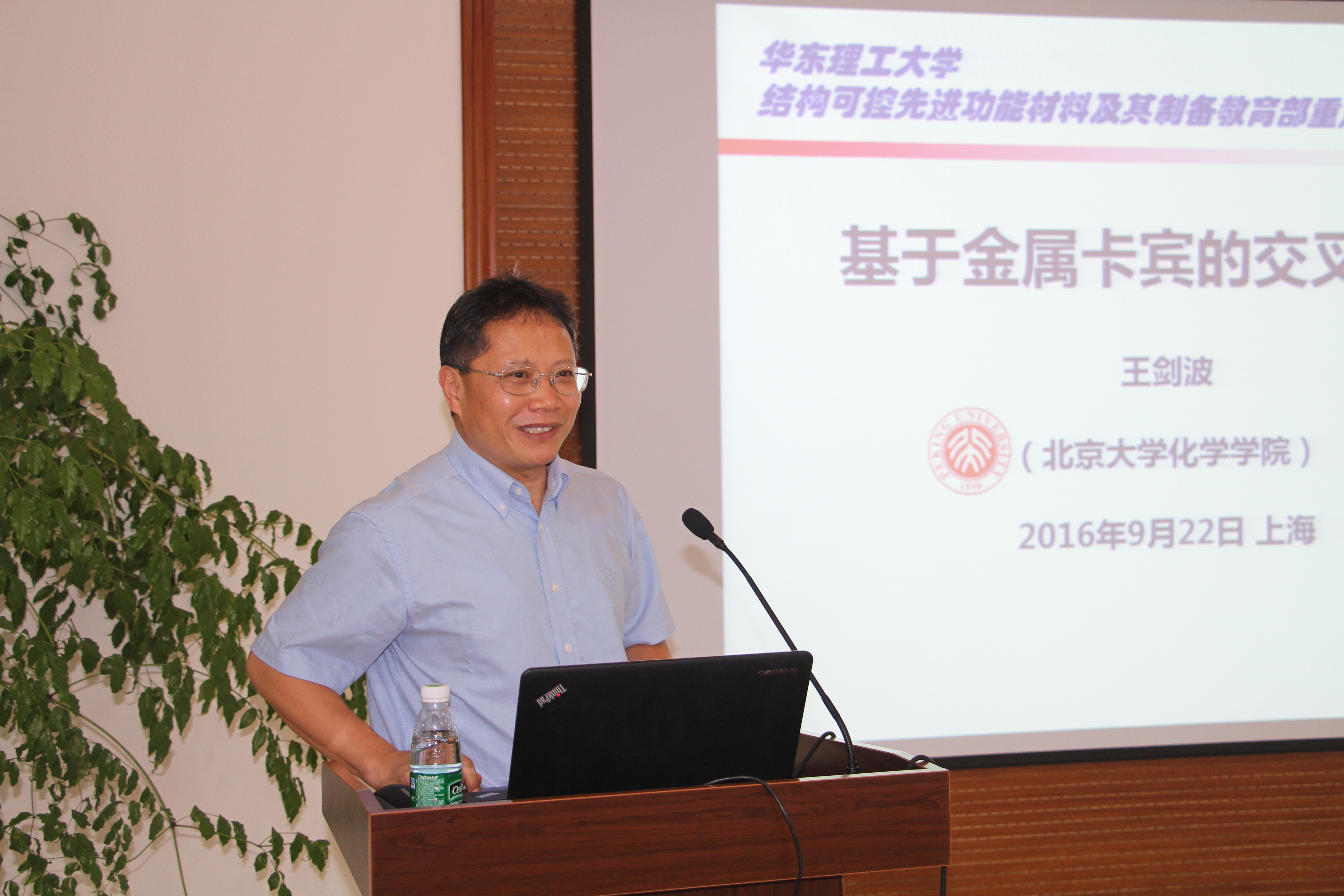 On September 22th, invited by Prof. Tian He (Academician of CAS), Prof. Wang Jianbo (the National Outstanding Youth Fund Owner, from Peiking University) visited our school. During the visited, Prof. Qu Jingping (President of ECUST) welcomed the arrival of Prof. Wang Jianbo on behalf of ECUST, and Prof. Wang gave some valuable advices about the construction and development of the organic chemistry discipline in our school. Meanwhile, Prof. Wang attended the Famous Teacher Forum and gave a lecture titled “Recent Advances in Carbene-based Coupling Reactions”. Prof. Qu Dahui hosted the lecture, and Prof. Tian He, Zhao Chunchang, Ma Xiang, Zhang Jun, Zhao Meixin also attended the lecture.