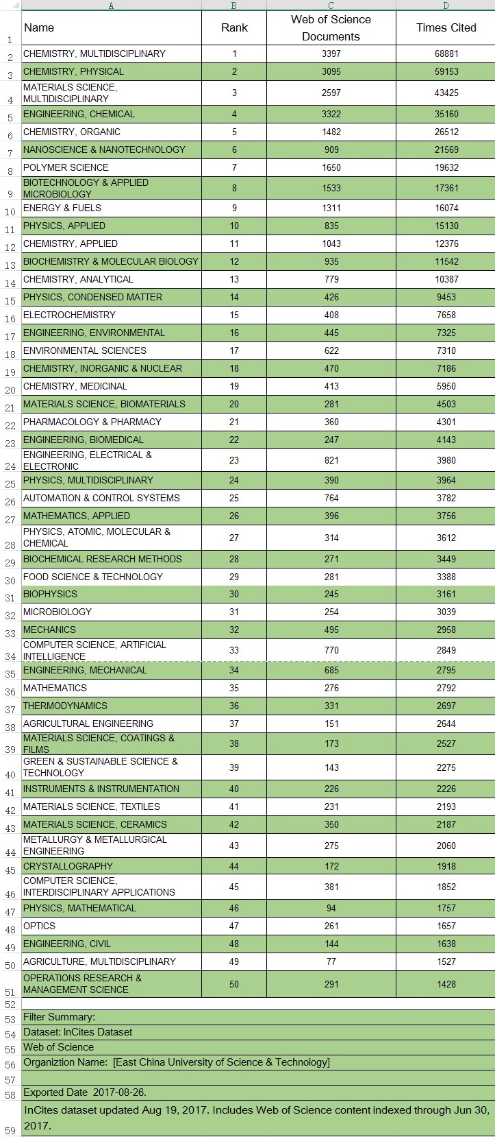 InCites Research Areas - ECUST