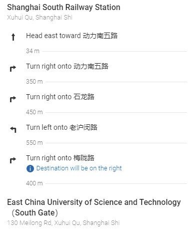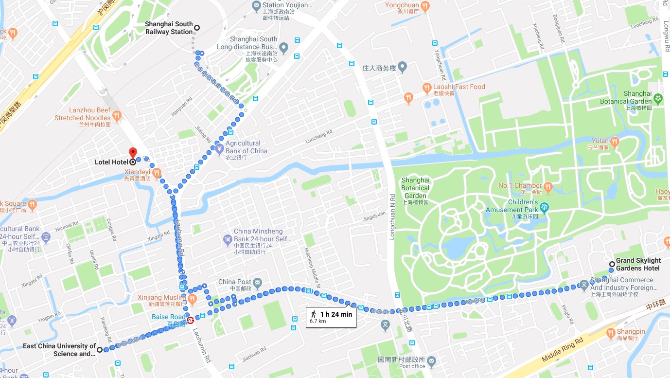 From Shanghai South Railway Station to the campus or hotels can be made by walk, the map and guidance are as follows: