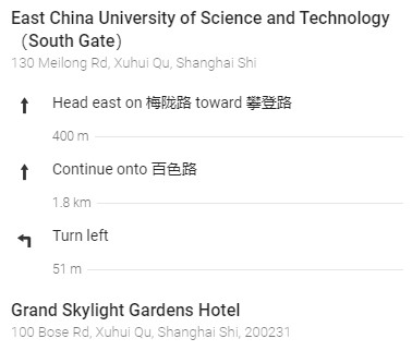 Campus: East China University of Science and Technology, NO. 130 Meilong Road.