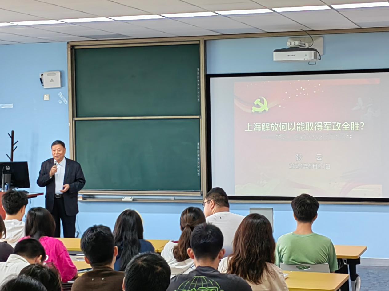 今年是中华人民共和国成立75周年,5月27日也是上海解放75周年纪念日,值此薪火相传之际,张云教授以“上海解放何以能取得军政全胜?——庆祝上海战役胜利75周年”为主题,从上海战役的概念、取胜之道以及胜利的意义三个方面展开,分别通过军事和政治的客观原因,中共中央高明的战略指导、有序的战前准备、壮烈的城市攻坚以及独特的制胜典范等主观原因对本次讲座主题进行深入分析。张云指出,上海战役的战前准备中制定的《入城守则》不仅是一份军事规定,更代表了党对于严明军队纪律的重视。习近平总书记强调,要深入开展纪律教育,严格纪律执行,用铁的纪律推动全面从严治党、全面从严治军。当前正在进行的党纪学习教育,正是兴党强党、强军兴军的又一重大举措。中国共产党无论在政治上、军事上,还是在经济上都战胜了自己的敌人,也展示了人民军队英勇善战和严明纪律的光辉形象,彰显了上海人民对敌斗争的传统美德。