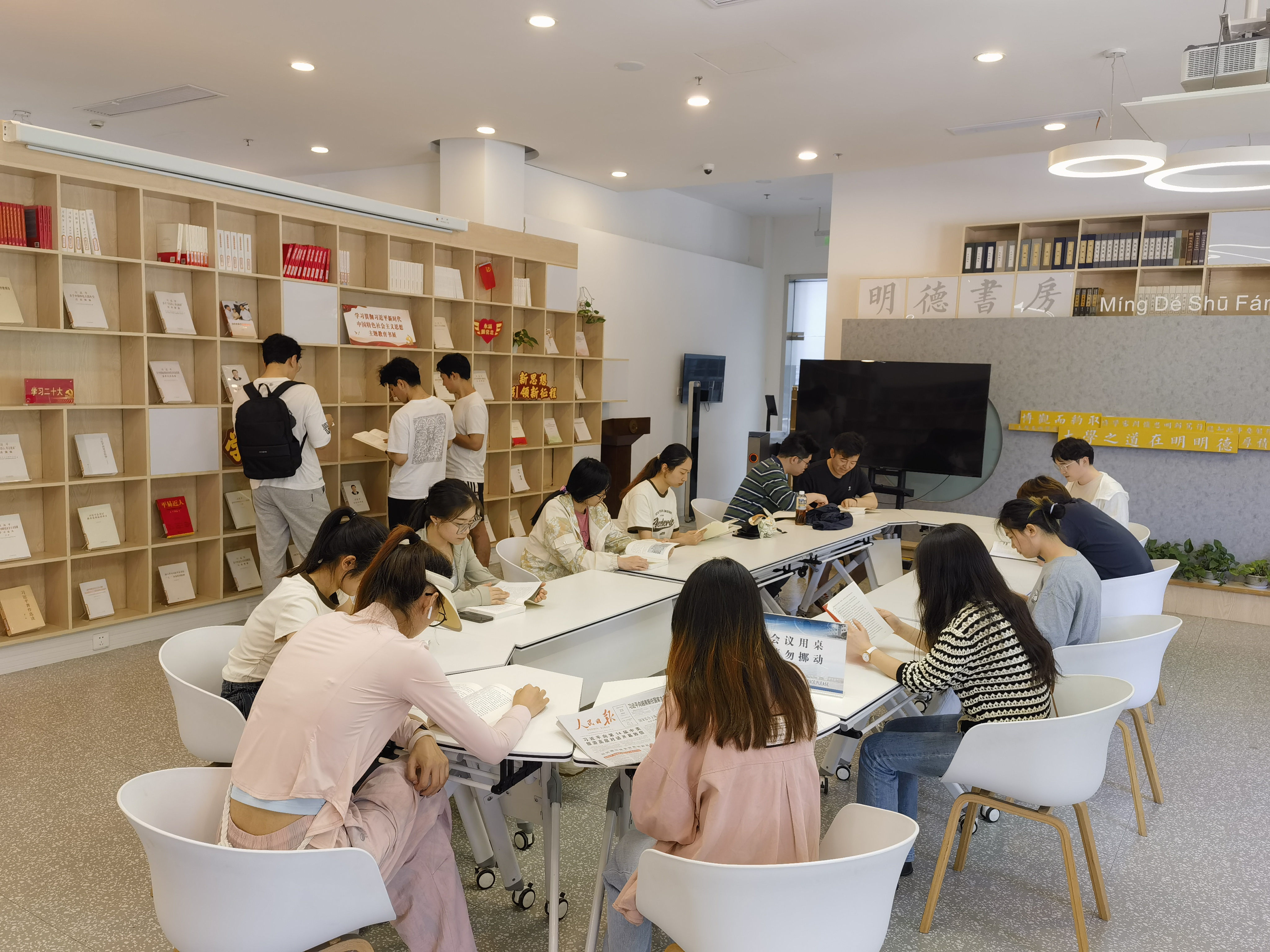 在明德书房,党员们自主翻阅党纪党规相关书籍,从历史发展中把握党纪学习教育的性质与任务,深刻领会党纪学习教育的重要意义。