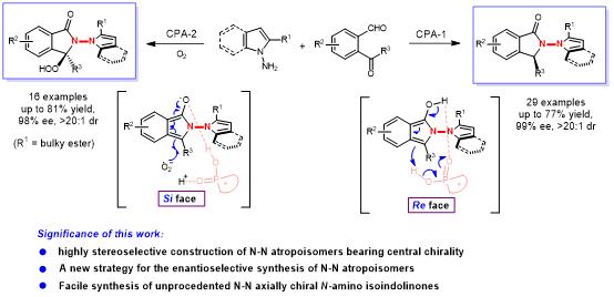 近日,365英国上市集团官网化学与分子工程学院的李星光特聘研究员在《Nature Communications》期刊上发表了题为 “Organocatalyzed diastereo- and enantioselective synthesis of N–N atropisomeric isoindolinones bearing central chirality”的重要研究成果。